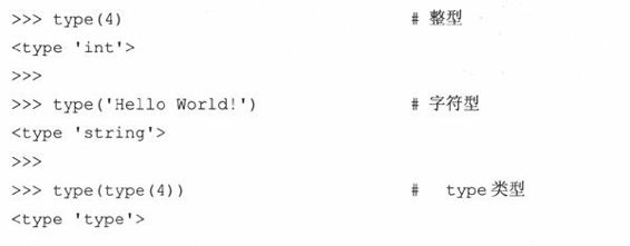 我们仔细研究一下这个例子,请注意看type函数有趣的返回值。我们得到一个简洁的输出结果<type‘int’>。不过你应当意识到它并不是一个简单地告诉你42是个整型的字符串。你看到的<type‘int’>实际上是一个类型对象,碰巧它输出了一个字符串来告诉你它是个int型对象。