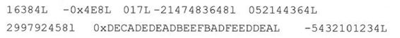 长整型类型是标准整型类型的超集,当你的程序需要使用比标准整型类型更大的整型时,长整型类型就有用武之地了。在一个整型值后面加个L (大写或小写都可以),表示这个整型是长整型。这个整型可以是十进制、八进制、或十六进制。下面是一些长整型的例子。