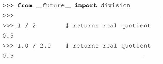 除法运算总是返回真实的商,不管操作数是整型还是浮点型。在未来版本的Python中,这将是除法运算的标准行为。现阶段通过执行from_fiiture_import division指令,也可以做到这一点。