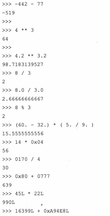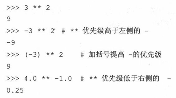 Python支持单目操作符正号(+)和负号(一);双目操作符+、一、*、/、%和**,分别表示加法、减法、乘法、除法、取余和幂运算。从Python2.2起,还增加了一种新的整除操作符//。