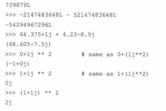 Python的标准整型类型是最通用的数字类型。在大多数32位机器上,标准整型类型的取值范围是-2**31到2**31-1,也就是-2 147 483 648〜2 147 483 647。如果在64位机器上使用64位编译器编译Python,那么在这个系统上的整型将是64位。下面是一些Python标准整型类型对象的例子。