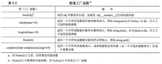 另外,由于Python 2.2对类型和类进行了整合(这里指Python的传统风格类和新风格类一译者注),所有这些内建函数现在都转变为工厂函数。我们曾经在第4章介绍过工厂函数,所谓工厂函数就是指这些内建函数都是类对象,当你调用它们时,实际上是创建了一个类实例。