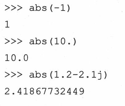 abs()返回给定参数的绝对值。如果参数是一个复数,那么就返回math.sqrt(num.real2 + num.imag2)。下面是几个abs()函数的示例。
