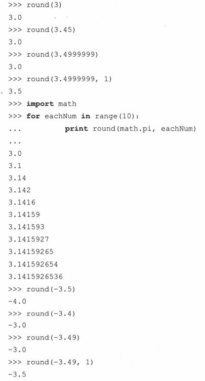 内建函数mund()用于对浮点型进行四舍五入运算。它有一个可选的小数位数参数。如果不提供小数位参数,它返回与第一个参数最接近的整型(但仍然是浮点类型)。第二个参数告诉round函数将结果精确到小数点后指定位数。