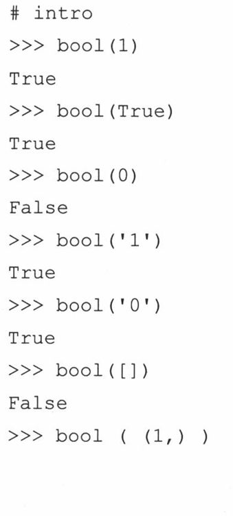 从Python2.3开始,布尔类型添加到了Python中来。尽管布尔值看上去是“True”和“False”,但是事实上是整型的子类,对应与整型的1和0。下面是有关布尔类型的主要概念。