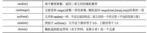 当你的程序需要随机数功能时,random模块就能派上用场。该模块包含多个伪随机数发生器,它们均以当前的时间戳为随机数种子。这样只要载入这个模块就能随时开始工作。下面列出了该模块中最常用的函数。