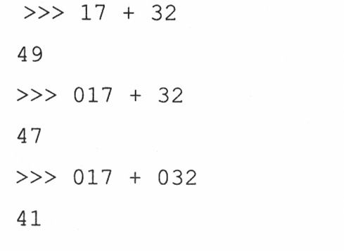 (a)为什么下面的例子里17+32等于49,而017+32等于47,017+032等于41?